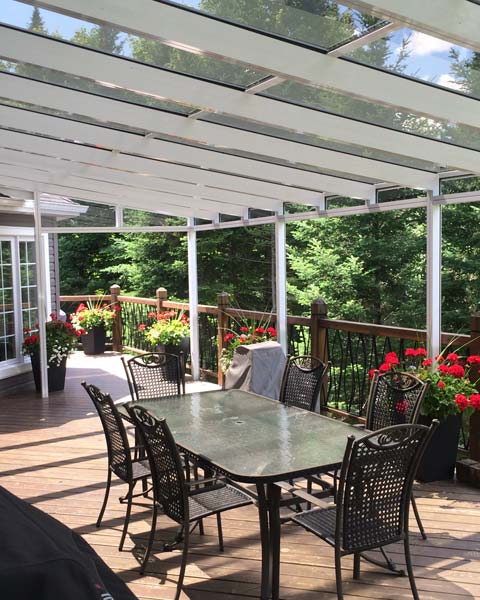 Son vitrage donne accès à la beauté du soleil, mais vous garde à l’abri en temps d’intempérie.